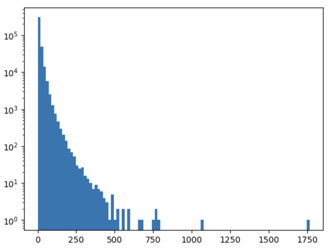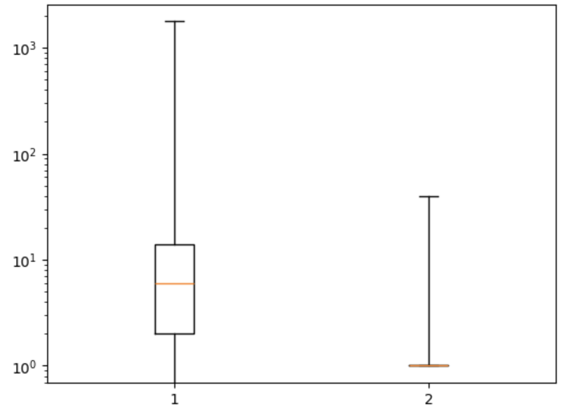 # 특정 구간의 데이터수가 너무 압도적으로 많아 다른 구간의 그래프가 보이지 않을때 사용한다.